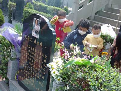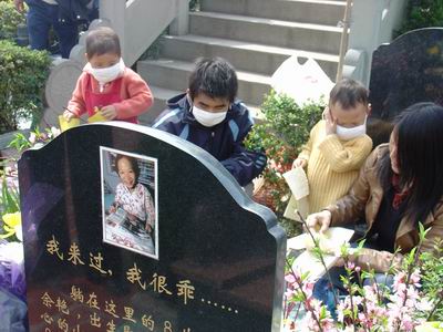 他身边的两个小家伙你一言我一语,亲热极了,全然顾不得大哥哥在讲什么。背着红色米老鼠包包的张雨婕拉着璐璐妹妹一屁股坐在地上,从口袋里掏出一把最喜欢吃的大白兔奶糖,认真地在佘艳姐姐的墓前摆成一排。“佘艳姐姐,我们带糖糖来看你了,请你保佑我们的病病快点好!”才一会儿工夫,这对“亲密宝贝”竟然打了起来,原因是两个“小谗猫”偷吃佘艳姐姐的糖果,又“分赃不均”,只好采取“武力”来解决。