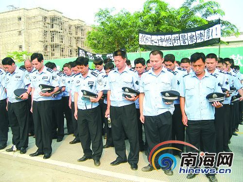 9月1日上午8时,魏海勇的遗体告别仪式在儋州市西培农场举行,300多名警民神情悲痛。“海勇走好!”一句句深情的话语寄托了大家的哀思。在送行的人中,有100多位来自西培农场各个生产队的职工和群众,他们是自发组织来送魏海勇最后一程的。“他是疲劳过度引发心肌梗塞死亡的。”魏海勇的挚友、当时参与抢救的西培农场卫生院黎荣西医生告诉南国都市报记者。