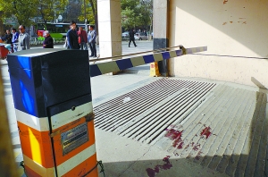 车库出口留下斑斑血迹。本报记者 陈明哲 摄