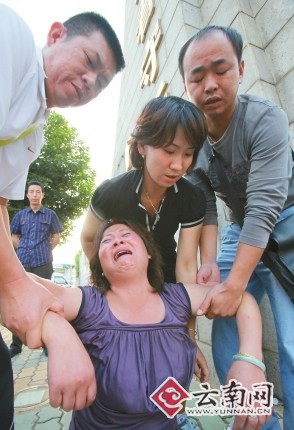 死者亲属在看守所大门前哭倒在地 王宇衡 摄