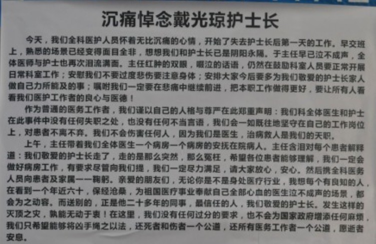 愿戴护士长一路走好!愿早日将凶手绳之以法,让我们活着的护士心头不再滴血!