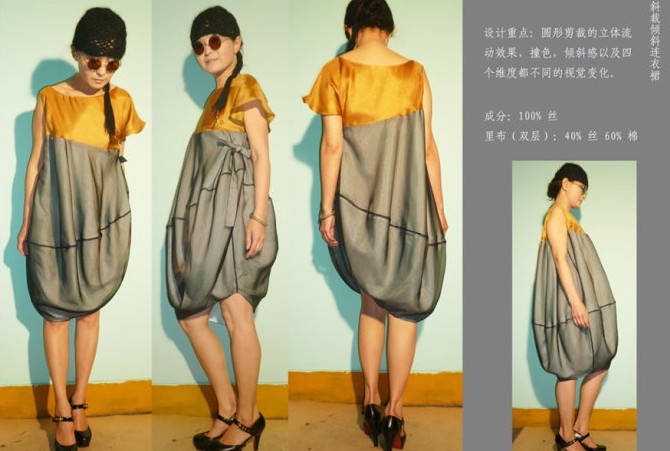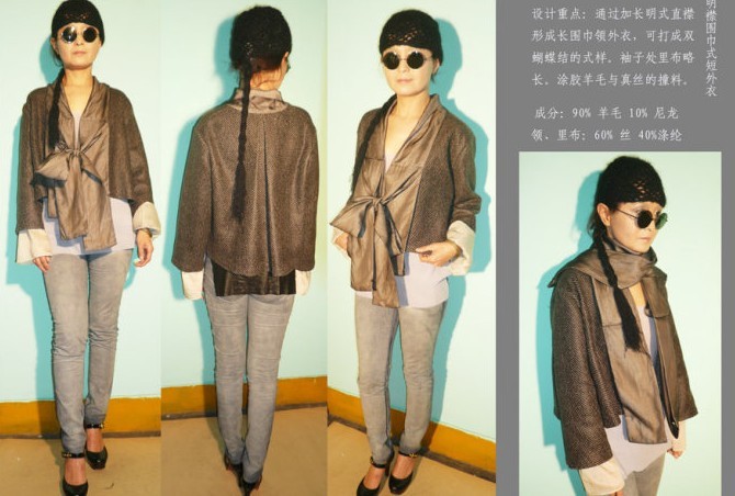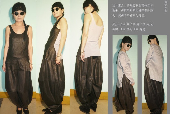 设计师希望通过自身对什么是有感觉的中国式的这一思考的追问建立起与之相关的审美取向,而非简单的去套用现今“盘扣中国式”的空洞手法。并通过将传统服装立体化,赋予传统的生活方式新的内涵等等具体而个人的方式将感受到的中国式现代化。【吹】不是对传统的照搬和复古,而是试图用一种新的眼光去打量传统从而进行再设计。这一再设计就是通过设计师的取舍,变换,对传统元素的颠覆和现代设计思想的运用来实现的。从明代家具到戏曲服饰,从古代衣裙上一个微小的细节到每种服饰背后的含义和在当时的功用,甚至古人的文章和武功,都是设计的灵感来源。