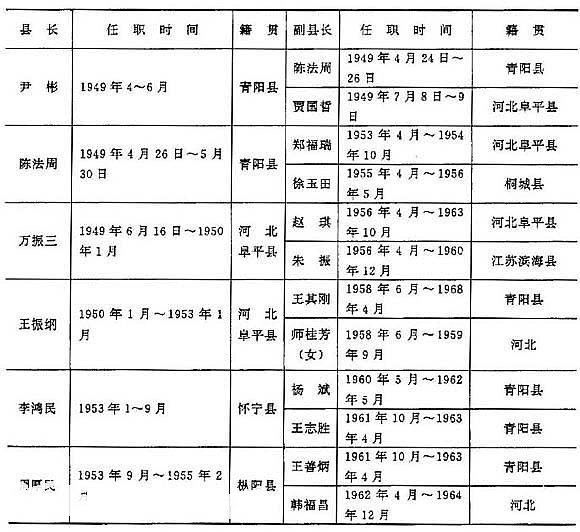 青阳县人民政府历任正、副县长更迭表(1934-1989)