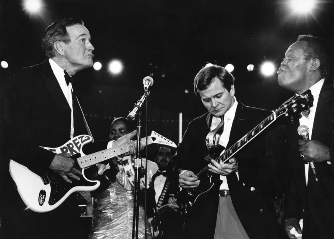 演奏乐器的老布什(左)