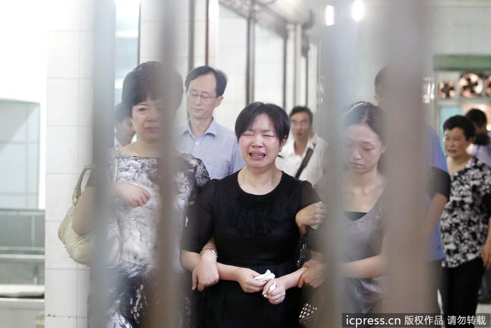 2011年6月29日,被网友称为“史上最牛校长”叶志平的遗体告别仪式在绵阳市殡仪馆举行。亲人、同事、学生代表、政府官员以及自发而来的群众等近500人为叶志平送行。据悉,叶志平,绵阳安县桑枣中学校长,5-12汶川大地震前,他花40多万加固教学楼,平时定期组织师生进行疏散演习,地震发生时,全校两千多名师生按照平日里的演习,仅用1分36秒全部安全撤离,创造了无一伤亡的奇迹,叶志平因此被网友称为“最牛校长”。 图为叶志平的家属走出火化间,悲恸不已。
