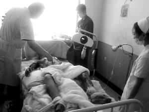 “毫无疑问,我们在尽最大努力挽救每一名患者的生命。”医生纪春明挥舞着沾满鲜血的乳胶手套说,有一名女性患者入院的时候身上的烧伤面积达到了99%,换句话说就是除了腋下的皮肤没有受损,其余的皮肤都已消失了。