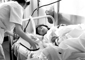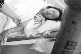 幸存9岁女孩葛稀雅正在医院接受治疗 本报记者 郭亮 摄