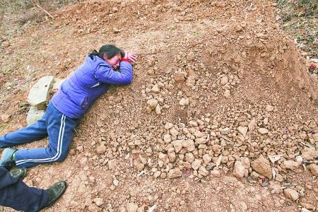 妈妈趴在甜甜坟前痛哭