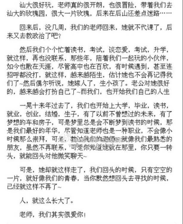你大概和我同届,我也被教过语文,政治,英语。放假想回去看一下她,该去哪?