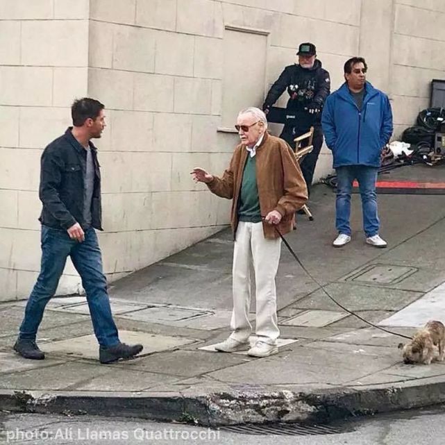 在最新上映的《毒液》片尾,斯坦·李还客串了一个遛狗狗的老头儿。