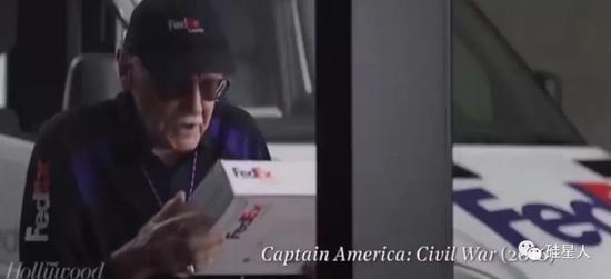有时候他也会在电影里拿自己创造的角色开涮。2016年的《美国队长:内战》里,他扮演的FedEx快递员一本正经地问钢铁侠,“请问你是托尼·屎大颗(Tony Stank)吗?”
