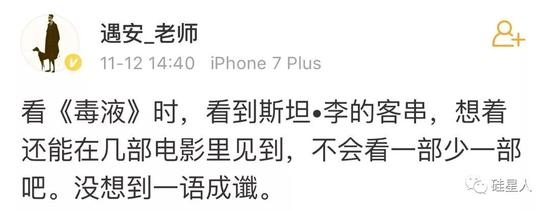 大量漫威迷仍然感到难以接受,毕竟影迷们前两天还在《毒液》电影里看到老爷子客串遛狗老人,精神还好得很啊!