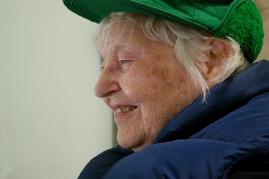 客厅里没有人,寒春坐在客厅右边的小书房里。看见记者来了,她起身迎接,话并不多。虽然已经88岁高龄了,但寒春白色皮肤下仍透出红润来,金色的睫毛,蓝色的眸子依然能看得见光泽,银白色的头发配上嫩绿色的帽子,很是醒目的搭配。因为在郊区气温比较低,室内已经开着空调了,寒春也穿上了羽绒背心。