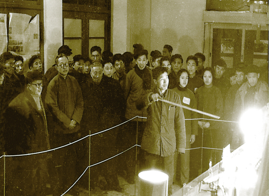 电光源专家蔡祖泉发明的“小太阳”灯,让无数上海人享受他的发明带来的光明,照片中演示者为蔡祖泉。