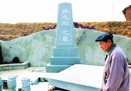 昨日,“孙志刚之墓”在他的故乡湖北黄冈市陶店乡幸福村建成,当他的父亲孙禄松把珍藏在柜子里的遗像拿出来时,他的母亲悲痛万分。