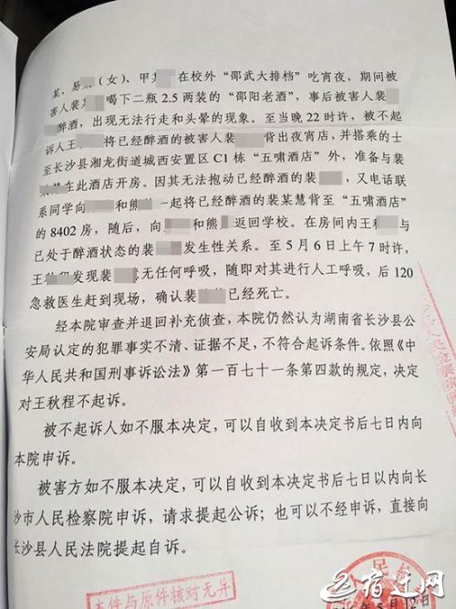 湖南女生醉酒被同学抬酒店后死亡 检察院立案复查