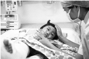 本报讯 昨日早晨,护士抱着小伊伊,半睡中,她误以为护士是妈妈,“妈妈,你去哪里了?我还以为你不要我了”,现场几乎所有人都哭了。
