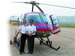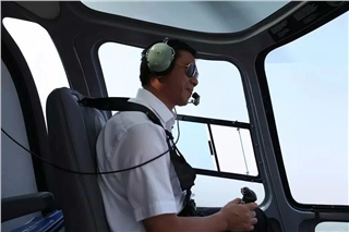 51岁的机长游少书,戴着美国大片《壮志凌云》主角汤帅哥的同款雷朋眼镜,一个健步跨上恩斯特龙480B直升机的驾驶室,系好安全带,带上耳罩,按下发动机的电动按钮,伴随着螺旋桨搅动气流发出的巨大声响,那架线条流畅、小巧轻便的“空中跑车”便腾空而起,不到半分钟就升到了百米高空。