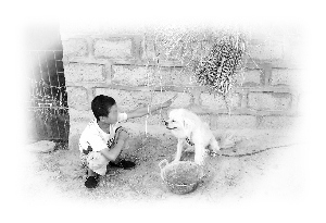 郑宁9岁的儿子每天独自和小狗玩耍
