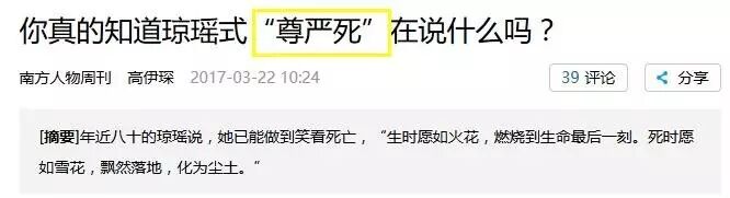 前不久,琼瑶的一封公开信,引发了一场有关“尊严死”的全民讨论。