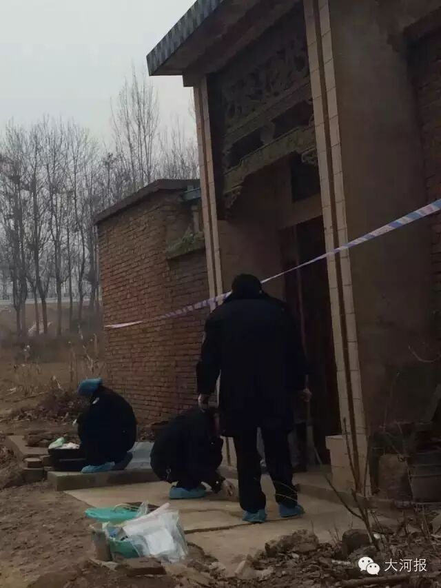 董家门口拉着警戒线,门口堆着警方刑事侦察的手套和脚套,还有提取证物的塑料袋。十多位民警正在忙着提取证物。