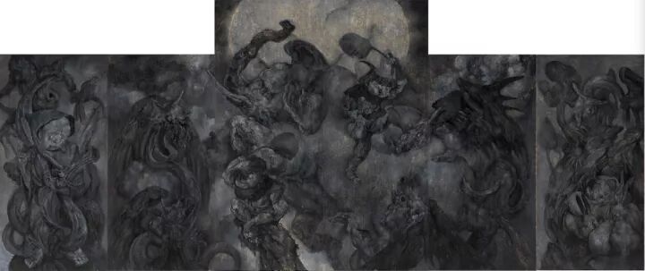 邱炯炯《洗象图》2016 木板丙烯 300×720cm