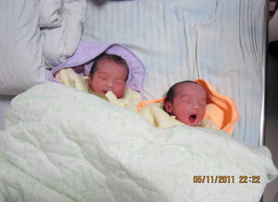 一对双胞胎才出生23天就失去母亲(家属提供照片)。