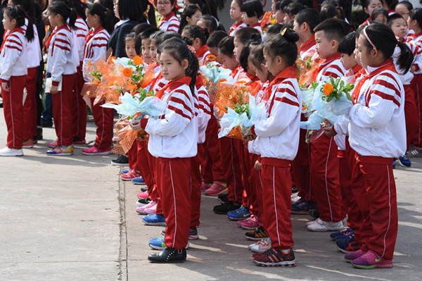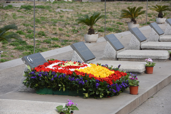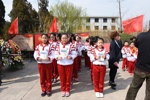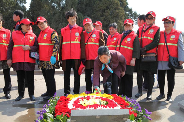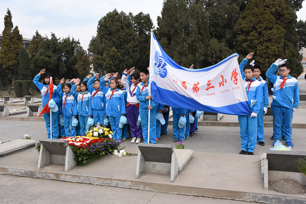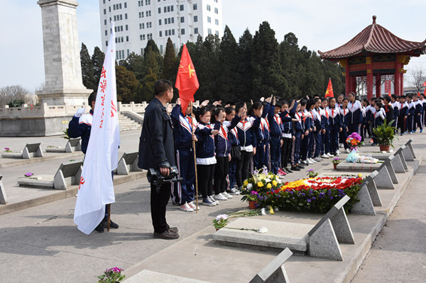 爸爸妈妈祖国和人民没有忘记您,请看,军人和老兵哥向您致敬!来扫墓的人群,络绎不绝,最注目的是那些穿着整齐校服的学生队伍。他们打着校旗簇拥着花圈和花篮,经过您的墓前都会驻足停留,表示缅怀和敬意。瞻仰您的威武英俊的遗像和英勇献身的事迹,向您表示发自内心的敬仰。