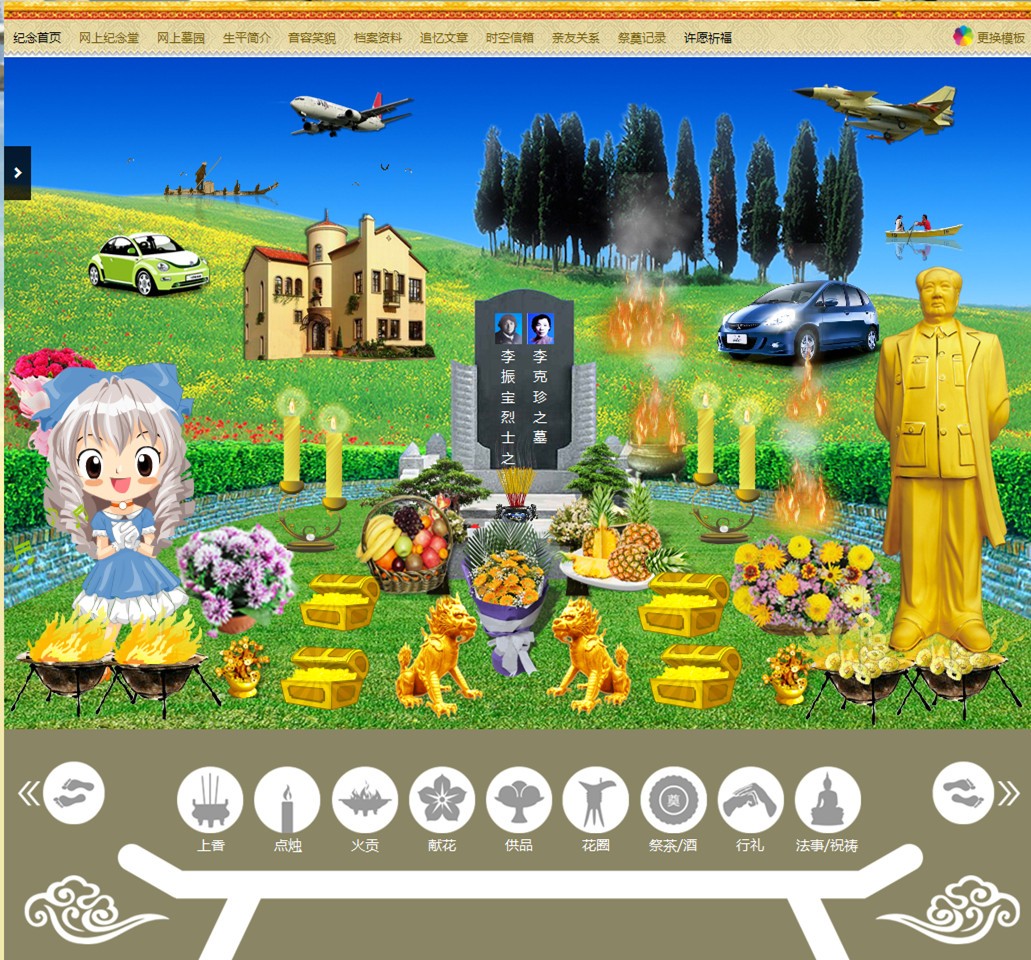 请为您已经逝去的亲朋好友留一段话、点一柱香、献一束花,让他们在天堂永不孤单。