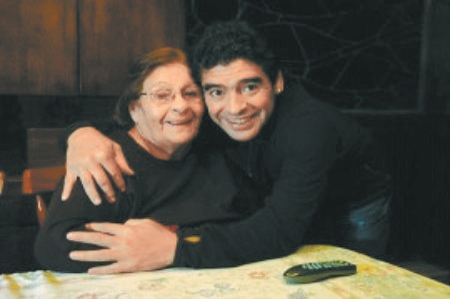 别看马拉多纳平常骂天骂地,放荡不羁,但是对母亲却非常孝顺。从2003年开始,达尔玛的身体就每况愈下,从去年以来更是多次病危。每当达尔玛住院接受治疗,马拉多纳只要还在阿根廷就会尽心尽力地在医院进行照顾。