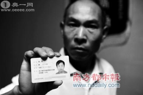 父亲拿着儿子向滔的身份证,孩子去了,但他的器官却救了很多人。南都记者张惠斌 摄