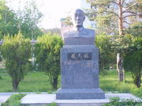 改革开放后,为了纪念这位延大的老校长,在校园里校友建立了林民镐的铜像。