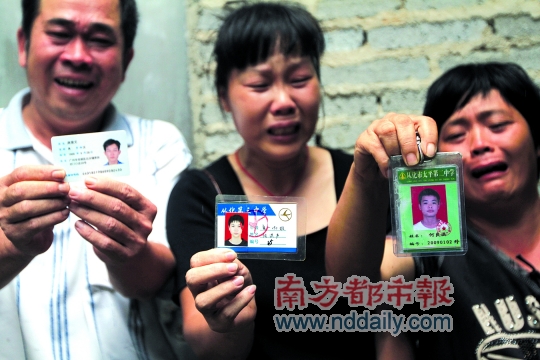 “出去打架。”14岁的何良洪抛下一句话,顺手拿上两个空啤酒瓶,和堂哥何洪声一起上了表哥庾楚文的摩托车,半小时后就没有了音讯。直到三天后,他们三个人的尸体浮现在流溪河白云段和花都段。