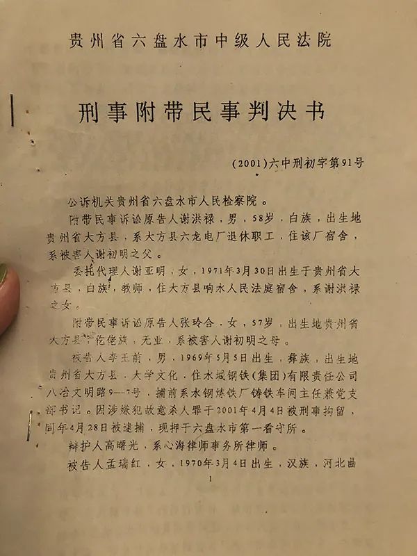 生于1969年的李玉前系毕节大方县人,是家中五兄妹中唯一一个考上大学的,当时作为“跨世纪人才”被引入六盘水市。他和谢初明相识于校园,李玉前钻研物理,谢初明则就读中文系,二人自大学二年级起开始恋爱,并于1997年登记结婚。
