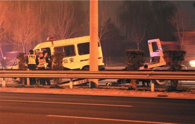 北京押嫌犯警车躲路人撞上隔离带 1名警察身亡