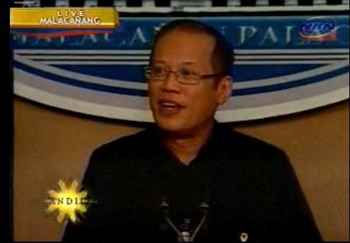 菲律宾总统阿基诺三世在24日的新闻发布会上面露笑容。