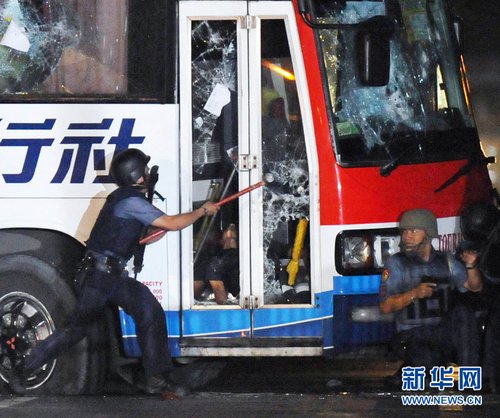 菲律宾警方表示,在劫持事件的最后时刻,劫匪以人质做“人肉盾牌”,狙击手最终将其击毙。菲律宾总统阿基诺深夜到事发现场了解情况,同时为警方营救人质的行动辩护,他说,由于劫匪曾经释放部分人质,当局最初相信劫匪会投降,但情况随后恶化了。