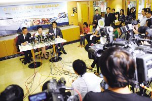 康泰旅行社总经理刘美诗(中)向媒体介绍惨案经过。