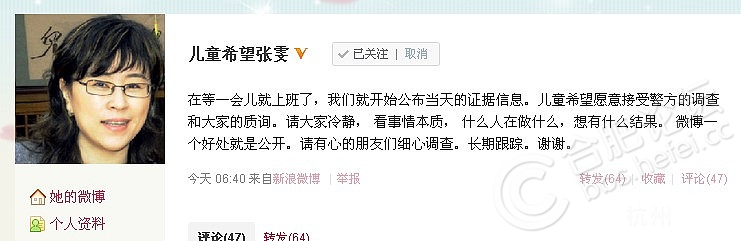 我去了微博中儿童希望张雯的微博(张雯为儿童希望救助基金会创始人)她已经做出了回应,但是具体的证据还没有。我按照时间顺序排了下:(以下内容都截取至儿童希望张雯的微博)
