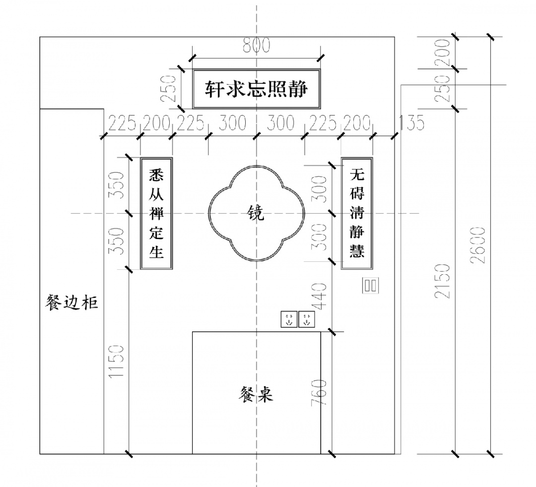 餐厅的布置启发了我北墙中堂的深化设计,壁挂花镜,镜像自然;