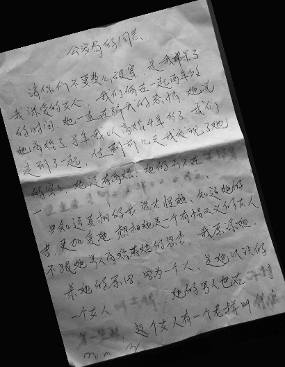 这竟然是凶手写的一封信,而且是写给警方的,抬头是“公安局的同志”。
