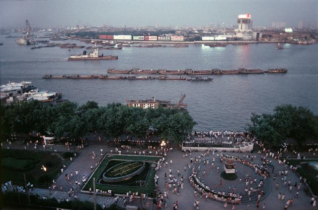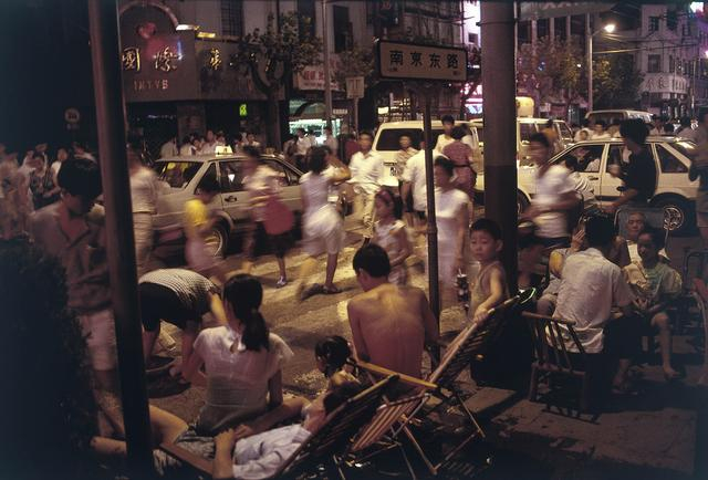 炎炎夏日夜晚,外滩人潮涌动,上海,1991。罗伯特·凡德·休斯特 作品