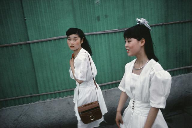 在外滩的两个年轻女子,上海,1991。罗伯特·凡德·休斯特 作品