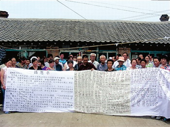 去年十一期间,赵明阳的叔叔赵宪俊参加了村支书、村主任组织的村民代表锦州游。他是30多名村民代表之一。途中,他们被一个个叫到村支书的房间时,赵宪俊拒绝在一份协议上签字,并提前回村,召集上访。