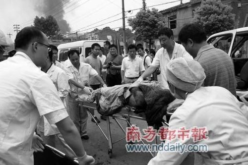 据在江苏中西结合医院的一名外来打工人员告诉记者,当时他是在公交车上被波及砸伤的,身上全是血,他比较熟悉附近的情况,便向附近的医院跑去。在路上他还看到有两男一女,身上被烧得发黄发焦,“幸好在路上遇到一个好心人,一个开浙江牌号的司机把我们三人送到这家医院。”