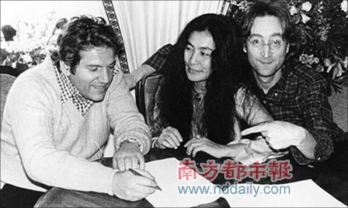 艾伦·克莱恩(左一)和小野洋子、列侬在一起。