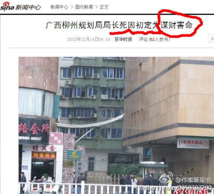 @作家草军书 警方总是一次又一次挑战、颠覆人类对常识性道理认知极限。柳州市规划局长在家中被尾随上门的罗某用土制炸药炸死,警方说罗某因缺钱而到局长家抢劫钱财。我很迷惑:有大中午一点钟上门抢劫的吗?哪个抢劫犯上门抢钱时会身上带着炸弹?他劫财就是为了好活,带着炸药是为抢钱得手后把自己炸死去阎王那花?