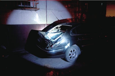 随后,亚运村派出所民警以及急救人员相继赶到现场。在确认贾宏声当场死亡后,贾宏声的尸体被运走。与此同时,民警封锁现场,进行了现场勘察。在楼体西侧可以看到,贾宏声坠楼砸中的是一辆黑色帕萨特轿车。帕萨特轿车的后备厢及后侧挡风玻璃被完全砸塌,部分车顶也往下凹陷。一名居民称,该轿车为附近一家汽车租赁公司的车辆。