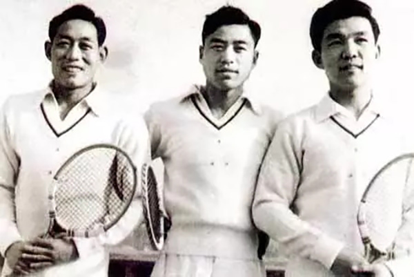 五十年代上海网坛三杰,左起:吴生康、梅福基、朱振华。