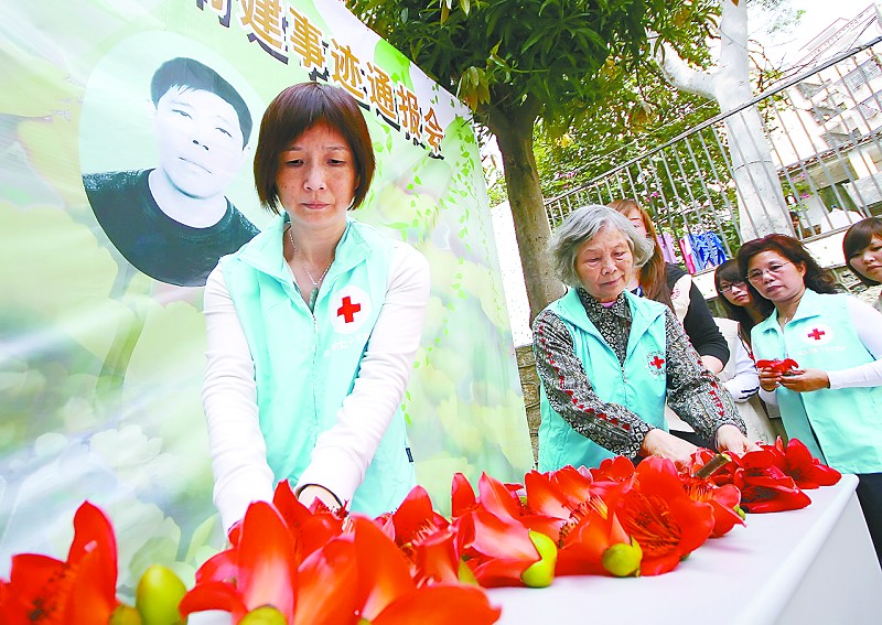 手捧木棉花 志愿者追忆无偿献血英雄郭青建